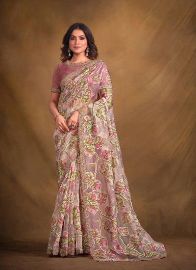 This elegant net saree is specially designed for the stylish and sophisticated woman. The stunning pink colour and velvet texture add a touch of sophistication and elegance to your look.
