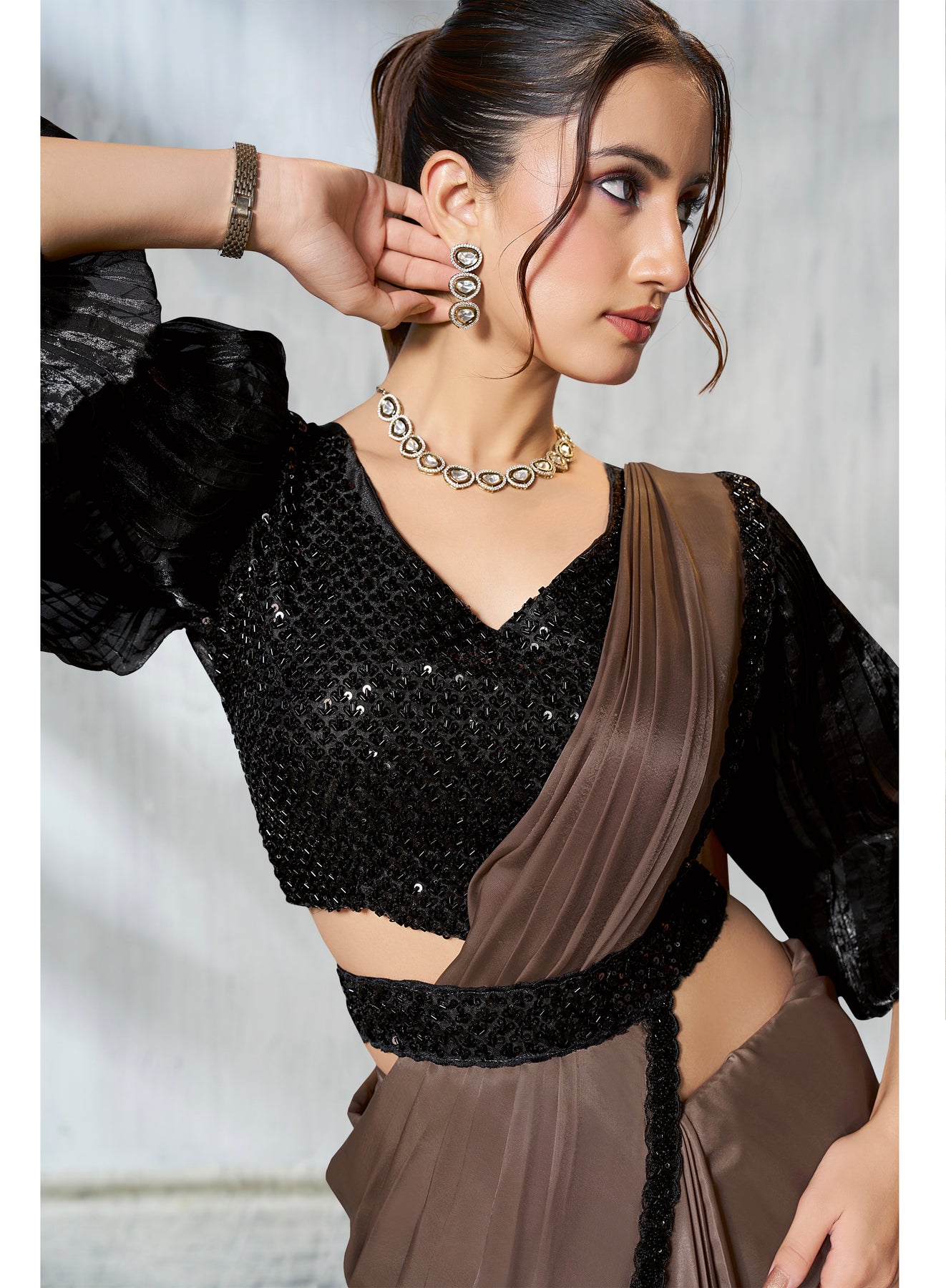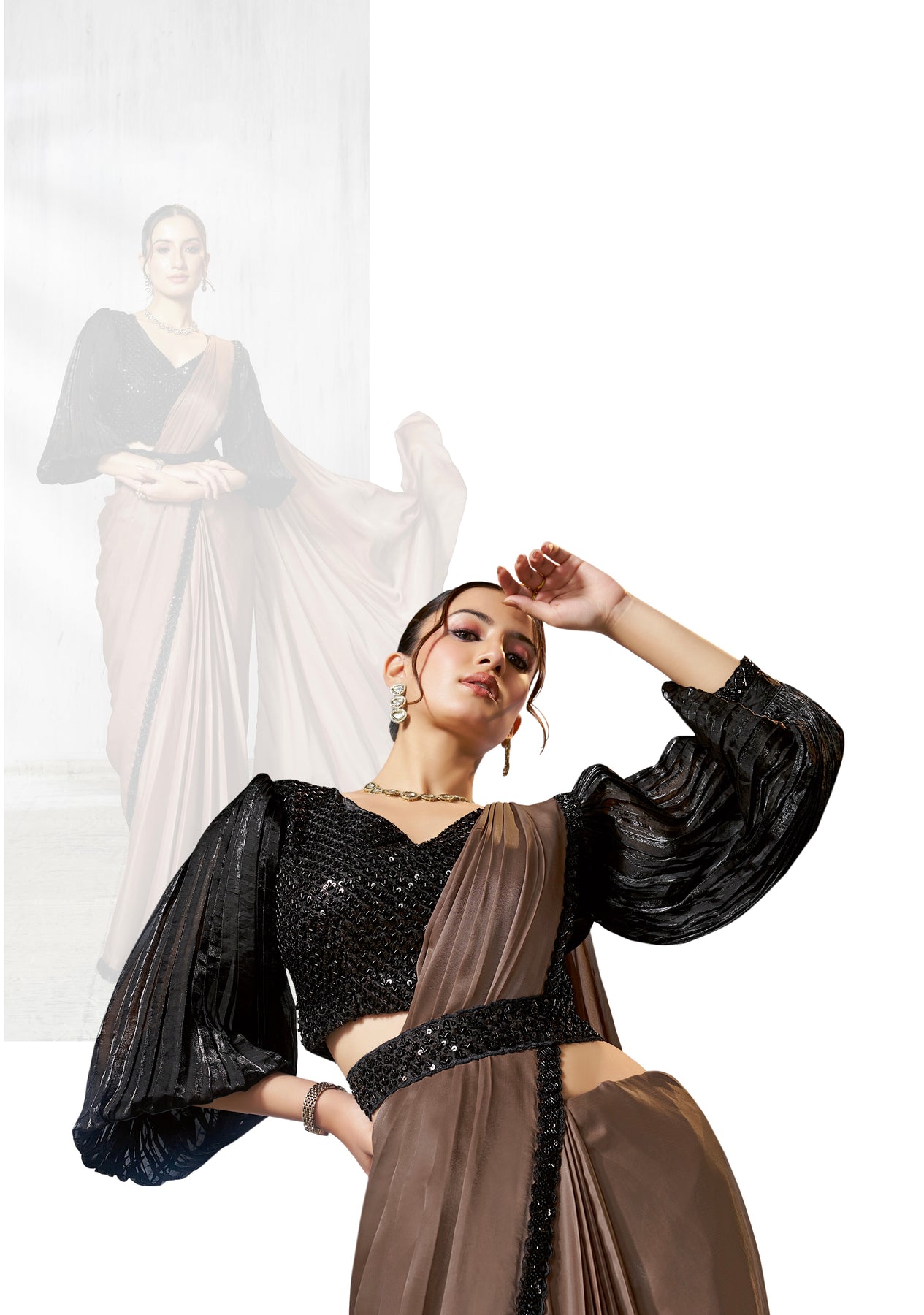 Discover a harmonious blend of traditional craftsmanship and modern sensibility in this pre-stitched saree. Adorned with luminous sequin work and meticulous hand embroidery, it captures the essence of timeless elegance while meeting contemporary styling expectations. This sophisticated piece elevates your ethnic wardrobe with its refined embellishments and ready-to-wear convenience.