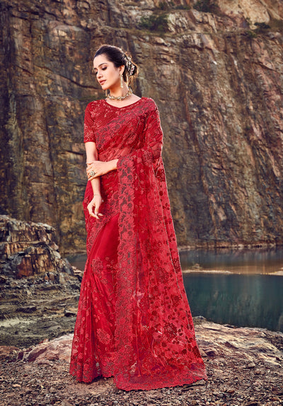 Vogue and pattern would be on the peak of your beauty as soon as you attire this pure net designer saree. Look ravishing clad in this dress that's enhanced with hand made Flower, Moti, Stones, Embroidered and Cut dana heavy works. Pallu give it a distinct look. Tailored with care using the soft net, it is quite comfortable to wear for all day long events.